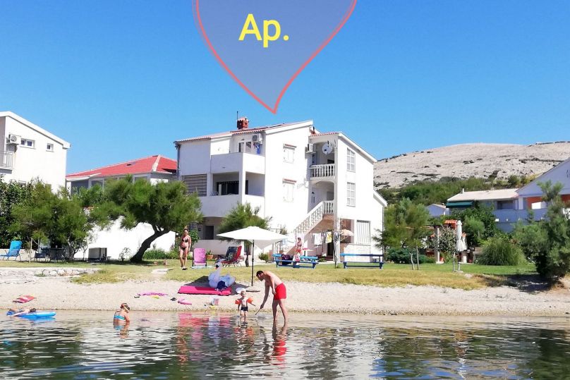 Dear guests, welcome! Our apartments are located in Dinjiska village in the south of the island of Pag 7km from the bridge. The house, situated just 10 meters from the natural beach, village and surrounding area, makes an ideal place to spend a holiday for families. In a quiet environ...