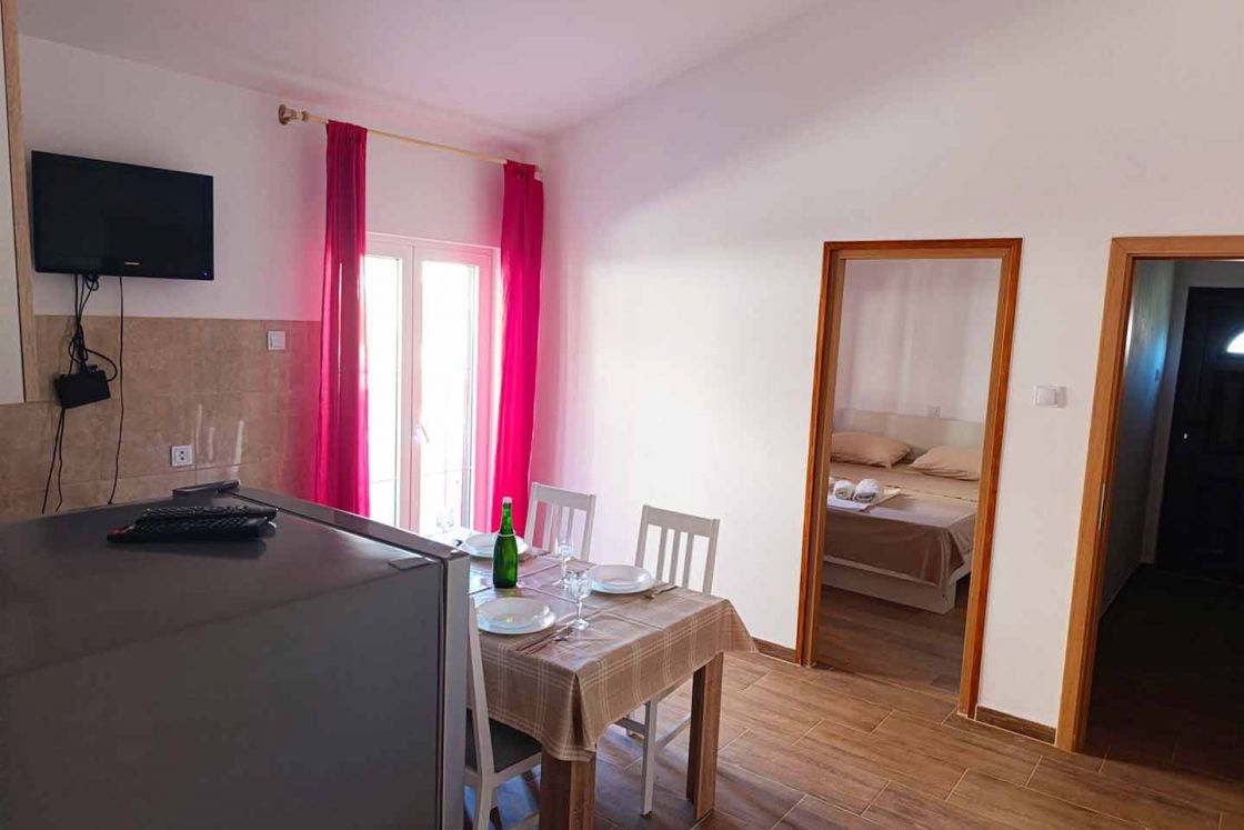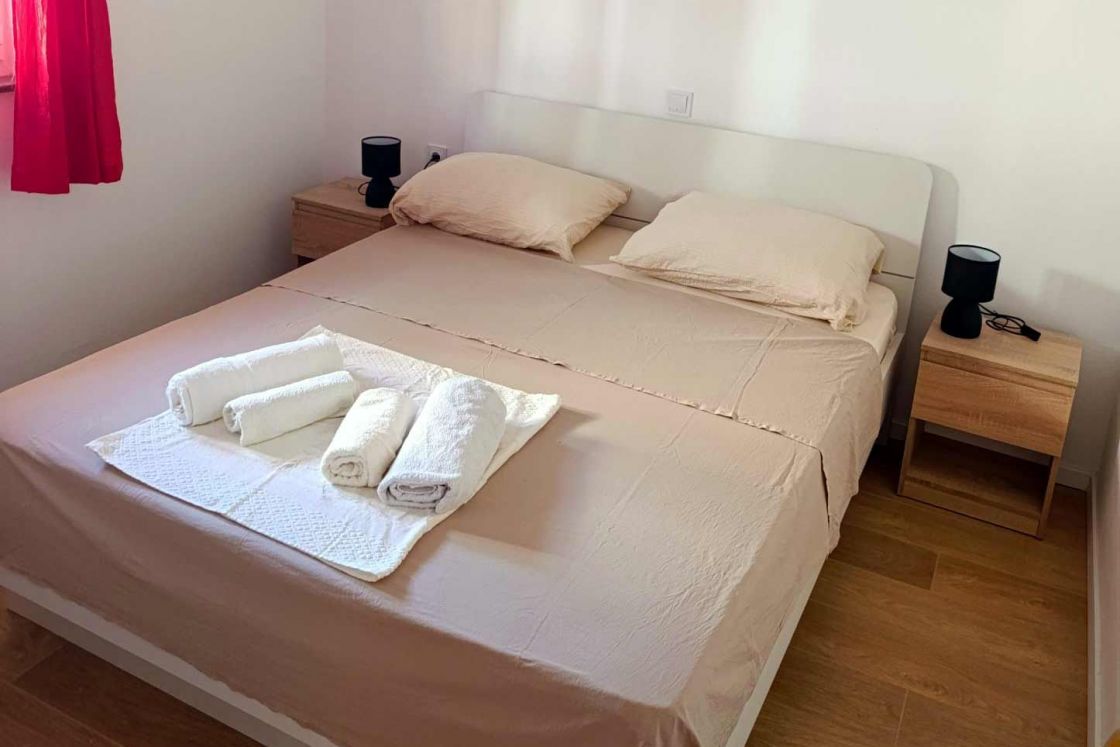 The apartment is located on the island of Pag and in the town of Pag, located on the first floor of a large family house, 10 minutes walk from the main town square and 15 minutes walk from the main town beach. The apartment is located in a quiet and peaceful location, has 50 square meters, two double bedrooms, a fully equipped kitchen, a living room where an extra bed for one person can be placed, one bathroom with a shower, a nice balcony, TV and WiFi (free). Upon arrival, we will welcome you with a bottle of wine. Please leave the apartment clean and tidy because we do not charge a cleaning fee. Thank you in advance!