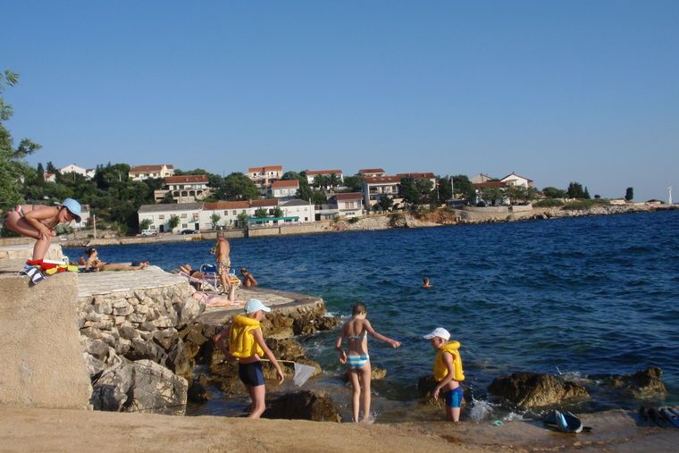 The village itself is not next to the sea, rather to get to the sea and the small port you have to go down to the village of Tovarnele, 1 km away. Along Tovarnele there are the beautiful beaches and promenade with views of the neighbouring small island of Dolfin and the islands of Cres and Lošinj. On Dolfin there is a lighthouse and the name of the island is due to the dolphins that often visit this part of Pag`s waters.